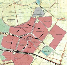 Met het originele oppervlak verdwenen ook de sporen van de vroege nederzettingen in dit gebied. Voor informatie over de ontginning zijn we aangewezen op papieren bronnen van honderden jaren na dato en van archeologische vondsten op de schaarse plekken waar de veenlaag gespaard is gebleven. Daarom is het verhaal van het ontstaan van Zoetermeer altijd een verhaal van hoe het geweest zou kunnen zijn. Ook in deze korte serie heb ik (met enige stelligheid) een beeld geschetst dat niet de absolute waarheid is, maar slechts een hypothese. Bronnen Hoefnagel, P.G., Zoetermeer een Hollands tweelingdorp, Zaltbommel 1980 Linden, H. van der, De Cope, Assen 1956 Linden, H. van der, Het ontstaan van de dorpen in de Rijnstreek in: In de RijnVaart der volkeren, Alphen aan den Rijn 1998 E.J.A. Zevenhuizen, E.J.A., De bevolking van Zoetermeer in de 17e en 18e eeuw, Heemskerk 1988 (niet uitgegeven, bibliotheek HGOS) | | AfbeeldingenStadsgeschiedenis |
