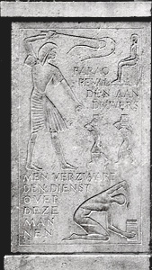 Linkerreliëf: FARAO BEVAL DEN AANDRIJVERS MEN VERZWARE DEN DIENST OVER DEZE MANNEN