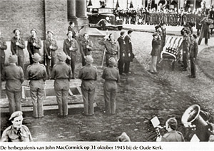 Op 31 oktober 1945 werden de drie Zoetermeerders en de drie Amerikanen met militaire eer herbegraven in een eregraf voor de Oude Kerk. De lichamen van Van Rij en McCormick waren in Zevenhuizen begraven geweest. De stoffelijke overschotten van Hoorn, Van Eerden, Maynard en West lagen al in noodgraven bij de Oude Kerk. Aannemer Smits maakte de grafkelder en de timmerman Veldhuizen zorgde voor een grenen kruis met de namen. De lijken van de in 1943 omgekomen Amerikanen werden op 18 maart 1946 alsnog overgeplaatst naar de militaire begraafplaats bij Neuville en Condroz, vlak onder Luik. De ouders van John McCormick gaven uitdrukkelijk te kennen dat zij Zoetermeer als laatste rustplaats voor hun zoon verkozen.
