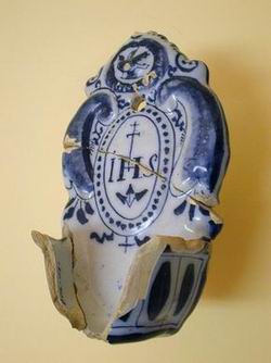 Schuilkerk VoorwegOp de plaats waar de provinciale weg de Voorwegwetering kruist, heeft de Archeologische Werkgroep Zoetermeer in 1996 de resten van een 17e-eeuwse kerk gevonden.In die tijd was de openbare uitoefening van de katholieke godsdienst verboden en de "roomsgezinden" behielpen zich met een tot kerk omgebouwde schuur. In het voorhuis woonde de pastoor. Deze situatie duurde voort tot 1818, toen de kerkgangers een godshuis in de Dorpsstraat konden bouwen. Behalve funderingen, waterputten en beschoeiingen, hebben de archeologen vele gebruiksvoorwerpen uit het pastoorshuishouden in de bodem aangetroffen. Een onvermijdelijk wijwaterbakje maar ook fraai kristallen glaswerk uit de 18de eeuw en tapkranen voor de wijnvaten in de kelder. Zoetermeers eerste pastoor na de Reformatie was Amandus van Nispen. Een bemiddeld man, die na zijn overlijden in 1692 onder meer chique kleding, een gouden horloge, vier onderbroeken en twee zilveren zoutvaatjes naliet aan zijn neefje. De schuurkerk had een orgelgalerij, waarvan de trappaal is terug gevonden, en sinds 1769 een klokje, dat nu bij De Doortocht aan de Hekbootkade hangt. Van de opgraving is uitgebreid verslag gedaan in de publicatie De kerk van Crooneveen (nog in voorraad). | AfbeeldingenArcheologie |